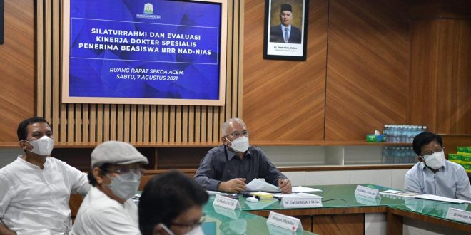 Hal tersebut disampaikan oleh Sekretaris Daerah Aceh Taqwallah, dalam sambutannya pada acara Silaturahmi dan Evaluasi Kinerja Dokter Spesialis Penerima Beasiswa BRR Nad-Nias dengan Pemangku Kebijakan di Kabupaten/Kota, yang digelar via konferensi video, di ruang kerja Sekda Aceh, Sabtu (7/8/2021).