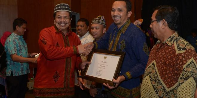 Sekda Aceh memberikan sertifikat kepada para bupati yang mewakili daerah asal budaya masing-masing.