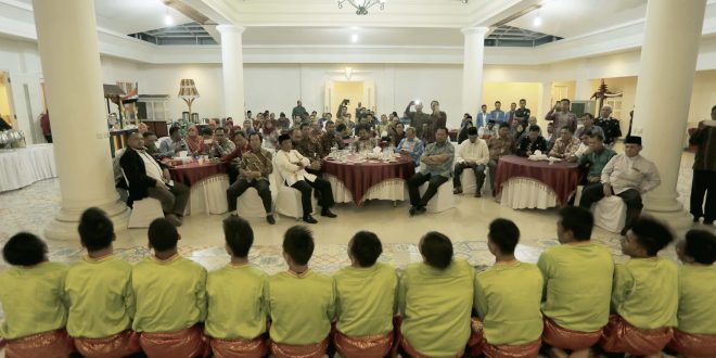 Selain disuguhi beragam makanan khas Aceh, para tamu undangan juga dihibur dengan penampilan Tari Rapai Geleng yang dibawakan dengan apik oleh Sanggar Cit Ka Geunta. (Jun)