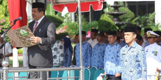 Banda Aceh – Sekretaris Daerah Aceh, Drs. Dermawan MM memimpin Apel Peringatan Hari Sumpah Pemuda ke 88 dihalaman kantor Gubernur Aceh, Jumat (28/10).