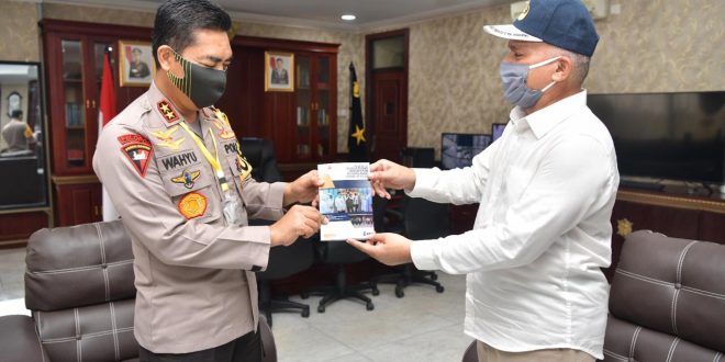 Banda Aceh – Sekretaris Daerah Aceh Taqwallah, menyerahkan buku Panduan Gugus Tugas Percepatan Penanganan Corona Virus Disease 2019 (Covid-19) kepada Kapolda Aceh Irjen Pol Wahyu Widada, di ruang kerja Kapolda Aceh, Selasa (21/4/2020).