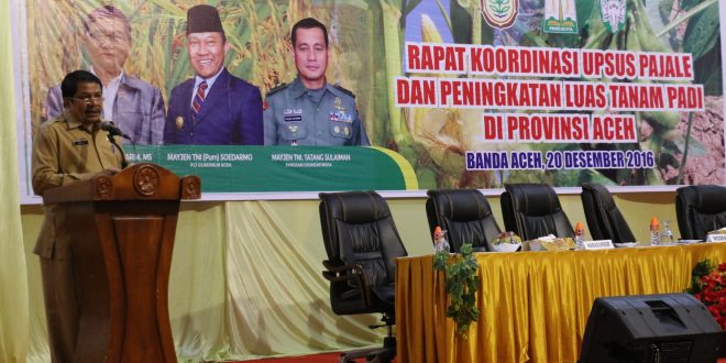 Hal tersebut diungkapkan oleh Sekretaris Daerah Aceh, Drs Dermawan MM, saat membacakan sambutan Pelaksana Tugas Gubernur Aceh, Mayjen (Purn) TNI Soedarmo pada pembukaan Rapat Koordinasi Upaya Khusus Peningkatan Produksi Padi, Jagung dan Kedelai dan Peningkatan Luas Tambah Tanam Padi di Aceh tahun 2016, yang di pusatkan di Amel Convention Hall, Selasa (20/12/2016).