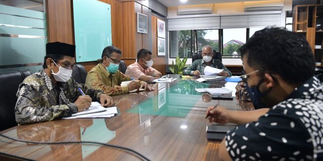 Sekda Aceh, dr. Taqwallah, M. Kes menggelar rapat dengan pimpinan PMI Kota Banda Aceh, Staf Ahli Gubernur Aceh Bidang Perekonomian, Keuangan dan Pembangunan, Staf Ahli Gubernur Aceh Bidang Keistimewaan Aceh, Sumberdaya manusia dan Hubungan Kerjasama, Kepala Biro Isra, dan Kepala Biro Humas dan Protokol Setda Aceh, Banda Aceh, Kamis (30/9/2021).