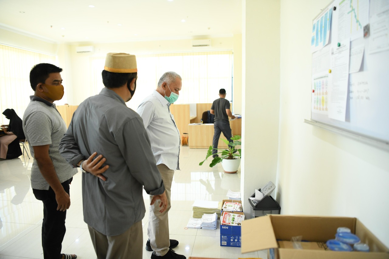 Usai meninjau gudang penyimpanan masker tersebut, Sekda melanjutkan peninjauan selanjutnya di Dinas Syariat Islam Aceh. Di sana tampak aparatur di Dinas Syariat Islam sedang menyiapkan materi khutbah pada Jumat 4 September nanti yang akan dibacakan oleh khatib di seluruh masjid di Aceh.