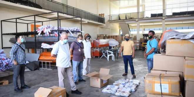 Kedatangan Sekda ke gudang tersebut guna memastikan seluruh masker bantuan Presiden sebanyak satu juta lembar yang disimpan di gudang BPBA itu telah dipacking secara klasifikasi dengan rapi untuk per kabupaten/kota.