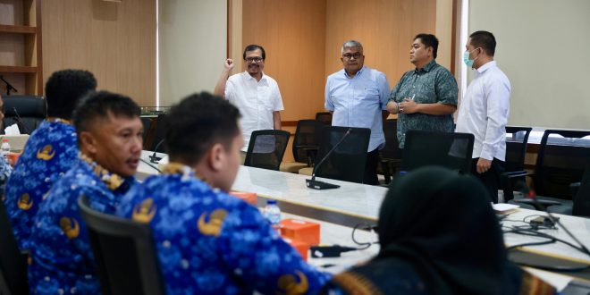 MEDAN – Sekretaris Daerah (Sekda) Aceh Bustami Hamzah, didampingi oleh Asisten Pemerintahan dan Keistimewaan Sekda Aceh Azwardi, meninjau Rapat Koordinasi (Rakor) terkait persiapan pelaksanaan Pekan Olahraga Nasional (PON) XXI Aceh-Sumut 2024, di sejumlah ruang di rapat, di Komplek Kantor Gubernur Sumatera Utara, Rabu (17/1/2024).