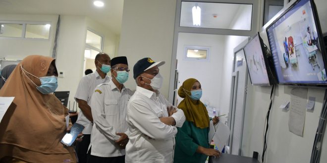 BANDA ACEH – Sekretaris Daerah (Sekda) Aceh, dr. Taqwallah M.Kes., meninjau ruang Pinere, tempat rawatan pasien Covid-19, di Rumah Sakit Umum Daerah dr. Zainoel Abidin (RSUDZA) Banda Aceh, Rabu 13/10. Dalam kunjungan itu, Sekda didampingi Staf Ahli Gubernur, Bukhari dan Iskandar Syukri, Kepala Biro Isra, Usamah Elmadny serta Kepala Biro Humas dan Protokol Setda Aceh, Muhammad Iswanto.