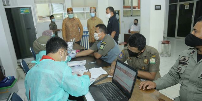 Banda Aceh – Staf Ahli Gubernur Bidang Pemerintahan, Hukum dan Politik Kamaruddin Andalah, memantau langsung pelaksanaan donor darah rutin Aparatur Sipil Negara Pemerintah Aceh, di 3 SKPA, yaitu Dinas Syari’at Islam 25 kantong, Satuan Polisi Pamong Praja dan Wilayatul Hisbah 23 kantong dan Dinas Perpustakaan dan Kearsipan Aceh sebanyak 19 kantong.