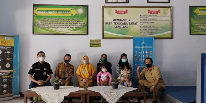 Saat tiba di NTB, Fitria Ningsi bersama dua anaknya dan juga pekerja Sosial Dinsos Aceh yang ditugaskan sebagai pendamping disambut oleh tim dari Dinsos NTB.