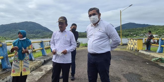 Asisten Perekonomian dan Pembangunan Sekda Aceh, Ir. Mawardi., didampingi Kepala Biro Administrasi Pembangunan Setda Aceh, T. Robby Irza, S.SiT, MT, saat meninjau Bendungan Paya Seunara di Kota Sabang, Kamis (18/11/2021).