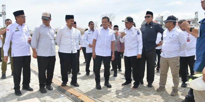 Meureudu— Wakil Gubernur Aceh, Fadhlullah, didampingi Bupati Pidie Jaya Sibral Malasyi, meninjau progres persiapan arena dan venue MTQ Aceh jelang tiga hari lagi pembukaan, di kawasan Perkantoran Bupati Pidie Jaya, Meureudu, pada Rabu, (29/10/2025).