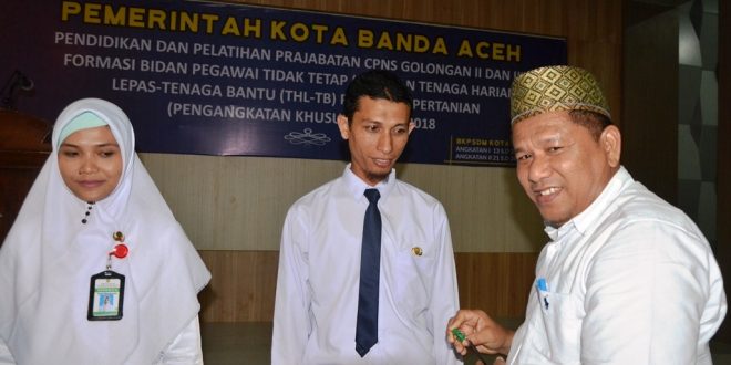 Banda Aceh – Wakil Wali Kota Banda Aceh Zainal Arifin menutup secara resmi Diklat Prajabatan CPNS dari formasi Bidan Pegawai Tidak Tetap (PTT) dan Tenaga Harian Lepas-Tenaga Bantu (THL-TB) Penyuluh Pertanian, Rabu (28/2/2018).