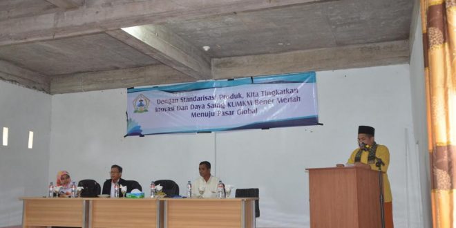 REDELONG : Wakil Bupati Kabupaten Bener Meria Tgk. H. Sarkawi membuka acara sosialisasi standarisasi lisensi usaha halal, BPOM, Depkes, SNI di Aula Dinas Transmigrasi dan Tenaga Kerja Kabupaten Bener Meriah di Jalan Bireuen-Takengon, Kampung Pante Raya, Kecamatan Wih Pesam, Bener Meriah, Selasa (19/9)