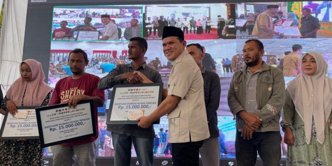 BIREUEN – Wakil Gubernur Aceh, Fadhlullah, menegaskan penyerahan bantuan rumah rusak ringan dan sedang tahap II bagi korban banjir dan longsor di 16 kabupaten/kota di Aceh, Sumatera Utara, dan Sumatera Barat merupakan bukti nyata kehadiran negara untuk rakyat. Ia mengapresiasi pemerintah pusat, khususnya Presiden Prabowo Subianto, atas komitmen percepatan rehabilitasi dan rekonstruksi pascabencana.