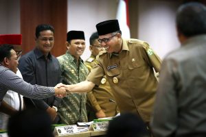 Banda Aceh – Wakil Gubernur Aceh Nova Iriansyah membuka rapat koordinasi antisipasi peningkatan angka kemiskinan dan percepatan penyaluran beras sejahtera (rastra) dan raskin tahun 2017 di gedung Serbaguna, Setda Aceh, Senin 21 Agustus 2017.