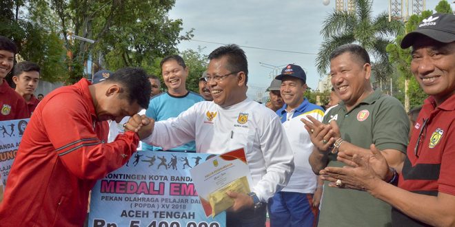 Kali ini, Wali Kota memberikan apresiasi kepada para pelajar Banda Aceh yang meraih medali di ajang Pekan Olahraga Pelajar Daerah (POPDA) ke 15 tingkat Provinsi Aceh yang digelar di Takengon bulan Mei lalu.