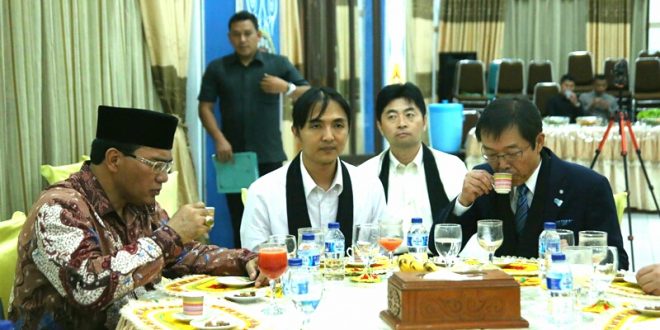 Berkunjung ke Takengon, Walikota Ochi Provinsi Kochi, Jepang, Mr. Yasuyuki Koda dijamu kopi Gayo oleh Bupati Aceh Tengah, Nasaruddin, Senin (17/10) malam di pendopo setempat