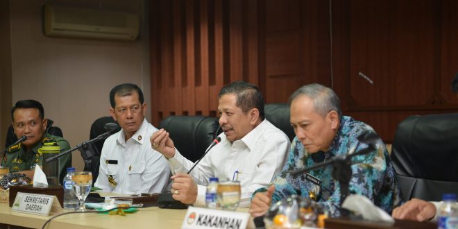 Banda Aceh – Sekjen Dewan Ketahanan Nasional Indonesia Letjen TNI. Doni Monardo, memaparkan konsep ketahanan pangan dengan strategi Emas Hijau dan Emas Biru di hadapan para pelaku usasa, perwakilan pemerintah Aceh, pimpinan SKPA dan SKPK, di Ruang Serbaguna Setda Aceh, Jumat 23/11/2018. Dalam paparannya, Doni mengajak serta seluruh peserta memanfaatkan program tersebut dengan tujuan pemberdayaan perekonomian daerah dan peningkatan kesejahteraan masyarakat.