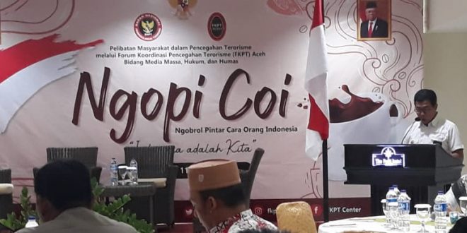 Hal tersebut disampaikan oleh Kepala Bidang Media Massa, Hukum, dan Hubungan Masyarakat Forum Koordinasi Pencegahan Terorisme (FKPT) Aceh Wiratmadinata, dalam materinya saat menjadi narasumber pada acara Ngobrol Pintar Cara Orang Indonesia (Ngopi Coy) yang digelar FKPT Aceh, di Hotel D’Pade, Selasa (11/3/2020).